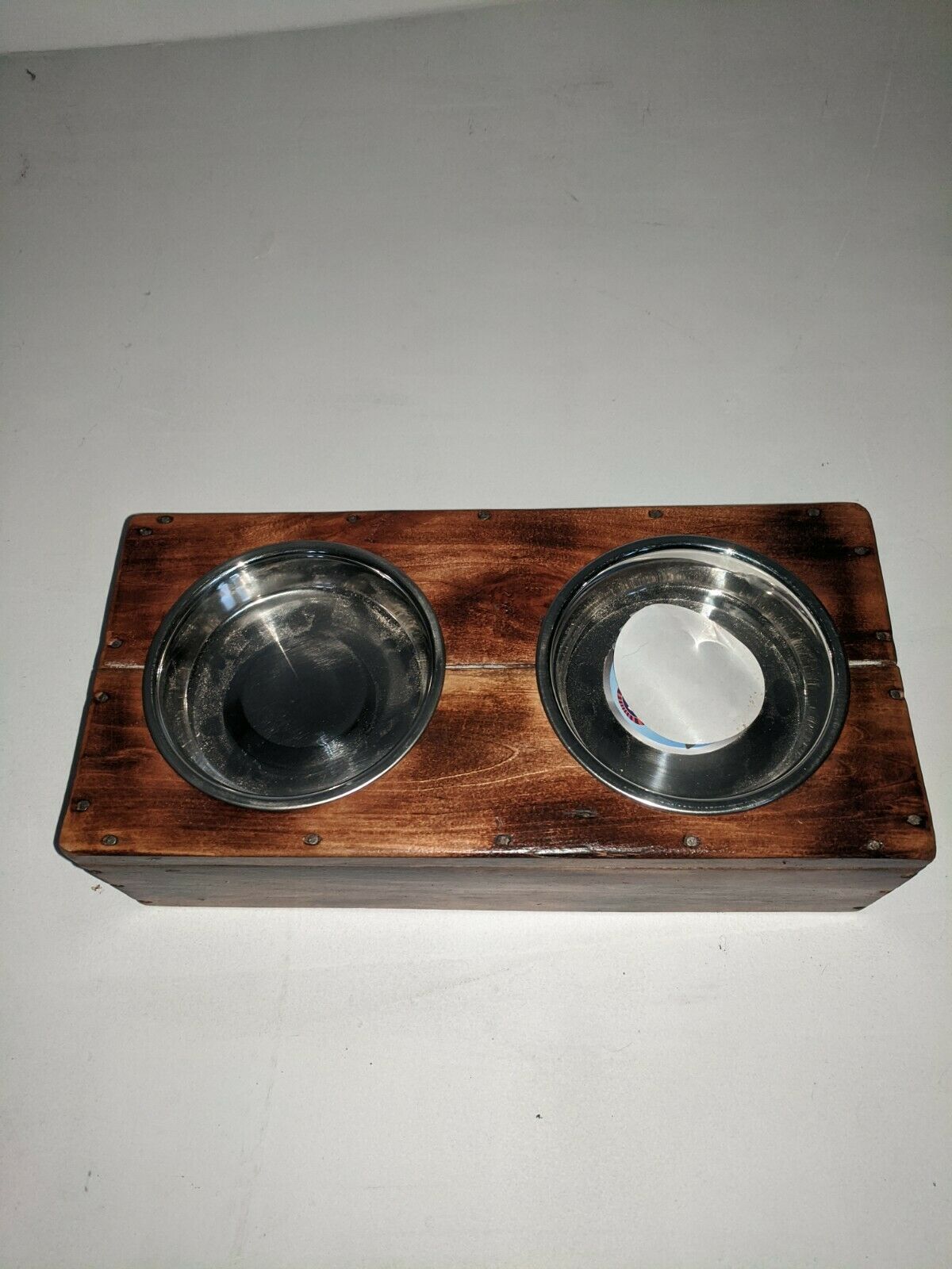 Wooden stand with 2 Metal Bowls – Sturdy & Stylish