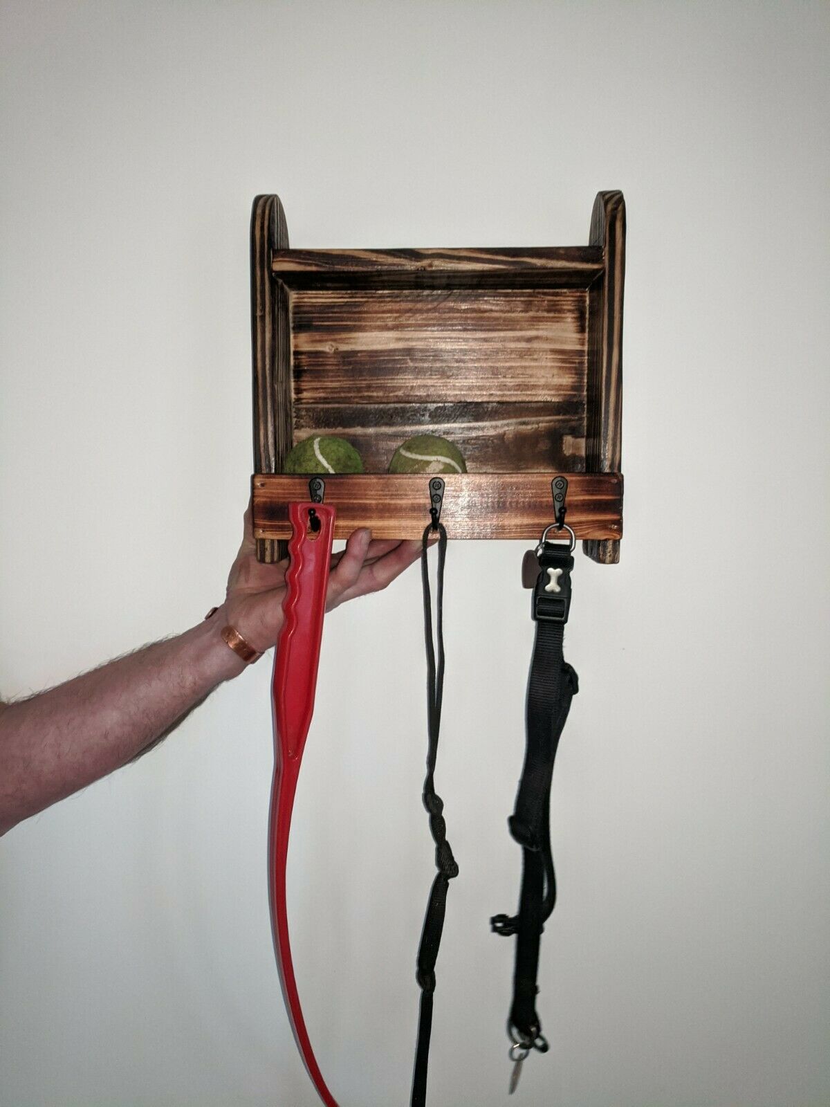 Dog Lead Hanger Storage Hooks Wall Mounted Wooden Rack holder Hanger Vintage. Condition is “New”. 3 hooks to hang all your doggy stuff. N.B. accessories not included (our border terriers would not give up their balls for anything). Made using reclaimed wood and a lot of love. Can also be made to your specifications.
